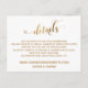 Offer your guests handy cards to help them remember your wedding details and stay in the loop as plans unfold with this distinctive, festive card. A striking text overlay reading "details" was designed using a modern, script font that has been embellished with hearts and overlaid with a faux gold foil effect. Use the template fields to customize these enclosure cards with your personal details. The background is an editable white you may change to any other color you prefer. Please don't hesitate to reach out if you have special requests. Other sizes are available. // 80 //