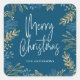 Gold Holiday Greenery on Dark Blue Christmas Square Sticker