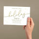 Plain white envelopes are included with paper invitations and will come to fit the invitation size you select. If you don’t need the envelopes, you may choose to not receive them by selecting the dropdown below "Envelopes" and choosing "None." If you’d like to have a design on your envelopes, you can browse all of these available envelopes to find the design that complements your Gold Holiday Script Custom Party Invitation.