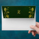 This holiday envelope features golden holly on a green background. The back flap has a placeholder for the last name initial bordered by gold holly design. To change details, click «Personalize». To move the text or change the text size, font, or color click «Click to customize further».