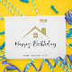 Gold House with Balloons Happy Birthday Realty Postcard