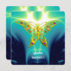GOLD HYPER BUTTERFLY,Turquoise Blue Fractal Waves Invitation