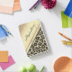 An illuminating gold metallic brushed gradient sheen as a backdrop where you can personalize it to make it uniquely your own along with a gold ribbon separating a faux fur leopard print for extra animal chic. Stylish sleek vibes.