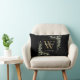 Elegant watercolor greenery monogram name lumbar pillow featuring a gold monogram initial with your name set in classic white text on a chic black background. Designed by Thisisnotme©
