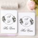 Elegant gold branch and initials wedding gold foil vow book set. Add a touch of elegant sophistication to your wedding with this beautifully designed set of vow books. It features a circle with branches and the couple's initials in classic script typography, encased in a border in black for a refined finish. The first book also includes the text "His Vows" and the second "Her Vows".