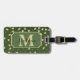 This luggage tag features your monogram in light gold, and your last name in dark green written across the top of the monogram. The monogram and text are placed on a green banner which is lined in matching gold. The background is a pattern of gold shamrocks randomly scattered across a green background. The back of the tag has the same shamrock pattern, with your customized text in light gold on the same banner. Show your Irish side!