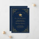 Announce your daughter's graduation to family and friends with this elegant traditional formal announcement card. This chic design features faux gold grad cap and script on a blue background framed with a faux gold filigree botanical border. Personalize with your own details, parents names, graduate's name, school and year. Designed by Susan Coffey.