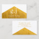 Chic elegant style jewelry designer business cards featuring a modern gold monogram on WHITE with a faux gold triangle accent shape edge. Click on "customize further" to change font styles or sizes. Modern minimalist monogram style.