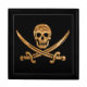 Gold colored skull and crossed swords. For the discriminating pirate. Please note this is an image, not real gold or metal.
