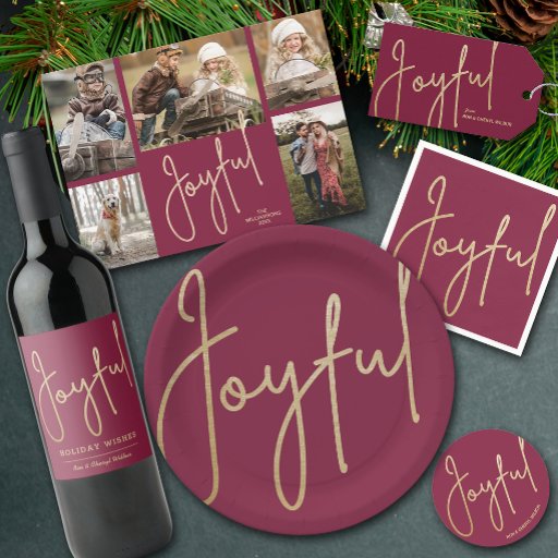 Joyful in an elegant gold script on a cranberry background, these candy bar wrappers also feature your holiday greeting on the back. Fun to send good wishes or to give out to customers, clients or guests at your holiday party or event. **Choose assembled or non-assembled when you order. MATCHING items in our collection.