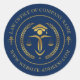 Gold Justice logo with custom text on blue Classic Round Sticker