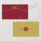 Modern minimalist double happiness knot of union, love and marriage in burgundy red and yellow gold wedding flat place card / guest escort card.