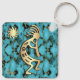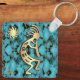 This is a Unique "One of a Kind" Southwest Kokopelli Keychain! It Features a Gold and Black Kokopelli Playing the Flute and Dancing Under the Sun on a Turquoise, Black and Gold Stone Background!