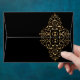 Gold filigree swirls black envelope.