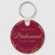 These keychains are designed to give as favors to bridesmaids in your wedding party. They feature a simple yet elegant design with a maroon or burgundy background, gold lettering, and a golden faux foil floral lace border. Perfect way to thank your bridesmaids for being a part of your special day!