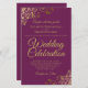 These beautiful wedding invitations are affordable and budget friendly making them the perfect choice for class, style, and beauty on a budget. The design features a cassis purple, magenta, or berry colored background with ornate golden lace curls and swirls in the corners. The typography includes fancy script lettering for a style that is at once simple and elegant. Wonderful way to invite your friends and family to share in your joy on your special day without breaking the bank.