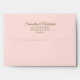 This beautiful wedding envelope is features a pale blush pink colored background with gold floral curls and swirls on the inside flap. There is a printed return address on the back flap in fancy script lettering. The design is understated and simple, yet classic, chic and ornate. Perfect way to make your wedding invitations all the more special.
