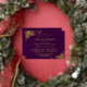 This beautiful rehearsal dinner invitation features an elegant design with gold foil printing on a deep plum purple background. The design features fancy script calligraphy with golden lace curls and swirls in the corners. There is space for information on both the wedding rehearsal and the dinner. Wonderful way to thank the bridal party while making sure they have all of the info they need.
