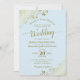 Gold Lace on Powder Blue Elegant Formal Wedding Invitation