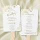 These beautiful hand held fans are designed to serve as both cooling for your guests, and a wedding program. The elegant design features gold script calligraphy on a classic white background with ornate golden faux foil lace frills in the corners. There is space to list the ceremony order as well as the wedding party and a short thank you note. Wonderful memento of your special day.