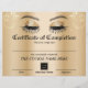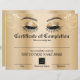 Modern Gold Lashes & Brows Salon Certificate of Completion Awards.