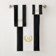 Elegant gold like laurel and golden monogram on black and white striped Bath Towel Set.