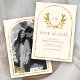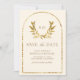 Gold Laurel Wreath Leaves Cream Wedding Save The Date