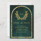 Gold Laurel Wreath Leaves Emerald Green Wedding Save The Date