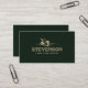 Elegant minimalist style with golden details on dark green background. Lawn mower logo in gold metallic tone.