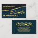 Over at the top lies your prestigious name and a job title. The blue wave layer has a set of gold handyman tools logo you can use with its business name just underneath.