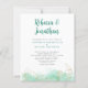 A budget Wedding invitation version from this range, features an elegant gold leaf design and green watercolor texture. Modern and minimal typographical style, this invitation is ready for you to customise with the details of your special day.