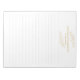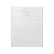 Elevate your desk with this elegant lined notepad, featuring a delicate gold botanical illustration framing the customizable message area at the top. The crisp white background and subtle grey lines provide a clean, modern space for notes, lists, or letters. The understated gold foliage adds a touch of sophistication, making this notepad perfect for personal, professional, or gifting use. The top section allows for a personalized name, message, or can be left blank for a classic look.