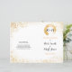 'Gold Leaf Spry' wedding collection design brings cheek to chic. Sparkly simple, minimalist design. A double sided wedding stationary, announcement text on one site and on the other side the bride and groom a duo-gram initials on top of a gold leaf seal. There are 2 versions of a gold leaf seal; A hollow circled brush stroke, and the other is like a messy ink spill.