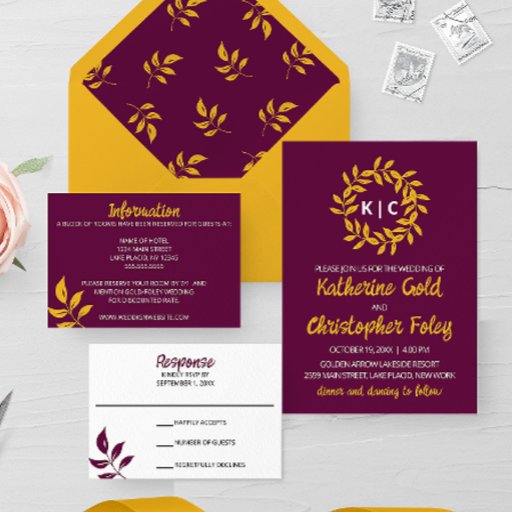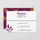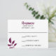 Our Gold Leaf Wedding RSVP Card is a perfect RSVP Card to match your Gold Leaf Wedding Invitation. This card features a stunning plum leaf elegantly placed at the bottom of this Response Card with plenty of room for your guests to write their responses to your wedding invitation. The back of this RSVP Card features the stunning gold leaves against the plum background.