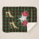 Gold Leaping Reindeer with Poinsettias Sherpa Blanket