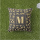 Gold Leaves Black Monogram Modern Stylish Outdoor Pillow