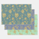 Gold Leaves Blue Green Spring Bridal Shower Wrapping Paper Sheets