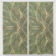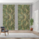 Gold Leaves Forest Green Elegant Pattern Sheer Curtains