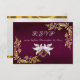 Gold Leaves Frame on Dark Purple RSVP Card featuring an elegant royal purple background with a frame of gold leaves on the front and the back has gold ribbon border with a white background. The back has details for the recipient to fill out. Designed to coordinate with the "Doves, Heart & Gold Leaves" Wedding Collection. To change details, click «Personalize». To move the text or change the text size, font, or color click «Click to customize further»