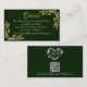 Gold Leaves Frame on Emerald Enclosure Card featuring an elegant emerald green background with a frame of gold leaves. Details for more information on the front and QR code with heart monogram frame on the back. Designed to coordinate with the "Doves, Heart & Gold Leaves" Wedding Collection. To change details, click «Personalize». To move the text or change the text size, font, or color click «Click to customize further»