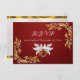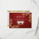 Gold Leaves Frame on Ruby Red RSVP Card featuring an elegant ruby, red background with a frame of gold leaves on the front and the back has gold ribbon border with a white background. The back has details for the recipient to fill out. Designed to coordinate with the "Doves, Heart & Gold Leaves" Wedding Collection. To change details, click «Personalize». To move the text or change the text size, font, or color click «Click to customize further»
