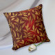 This throw pillow features a pattern of gold leaves on a rich burgundy red gradient background that almost seems to glow. Both sides of the pillow have the same pattern.