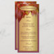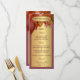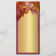Elegant autumn dinner menu template card featuring a gold printed design with colorful fall leaves and a maroon border. Although set for Thanksgiving, this card can be customized for any fall or autumn dinner occasion.