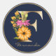 Gold Letter F Elegant Navy Floral Monogram Classic Round Sticker