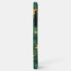 A green phone case with a Christmas theme, featuring pine branches and golden stars, with small lights.