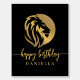Simple and powerful, this birthday party photo foam core poster design features a lion profile illustration in gold on a contrasting black background. It makes a nice logo for a celebrating a leo birthday and makes for a fun photo-op backdrop. Personalize the text template with the guest of honor's name.