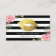 Gold Lips Floral Black White Stripes Makeup Artist Business Card