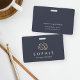 Perfect for your spa, holistic health & wellness, yoga studio, or massage therapy business, design features a rich navy blue background adorned with a faux gold foil lotus flower logo. Personalize with your employee name and title or role in classic white lettering. A silhouette of a meditating person is subtly worked into this modern and elegant design that's perfect for branding your wellness-related business. Add your business address or additional information to the reverse side.