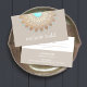 This classy lotus flower illustration has a beautiful fusion of retro, modern and new age. Mandala inspired faux gold leaf rosette medallion is perfectly accented by medium tan background. Turquoise blue center.*Please note that gold foil is a digital image - no texture or shine. An artistic and earthy business card ideal for those in the healing arts, landscape design, all natural or organic beauty, chic fashion or nature based consumer goods and services.