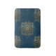 A pattern of beautiful gold mandalas repeated into an ornate damask pattern. The gold is shiny to imitate real gold foil. The mandalas are designed with intricate, hand drawn line work and placed on a deep navy blue background.